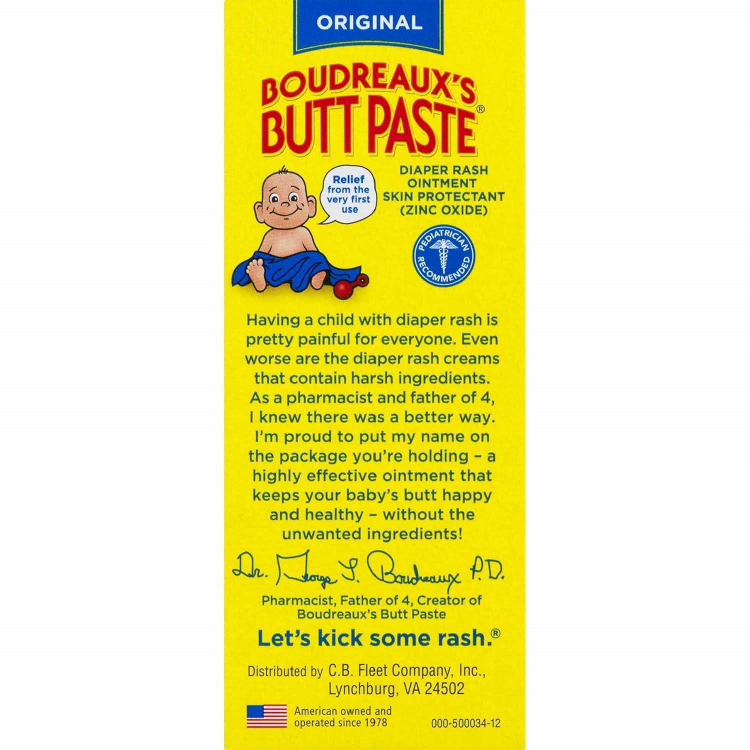 Goes on and clean off easily. Treats and protects. Pleasant scent. Pediatrician recommended. Boudreaux's Butt Paste was specifically formulated by a pharmacist with directions from a respected pediatrician to provide effective diaper rash care. It spreads on easily, cleans off quickly, and has a pleasant scent. Use with infants, children and adults.