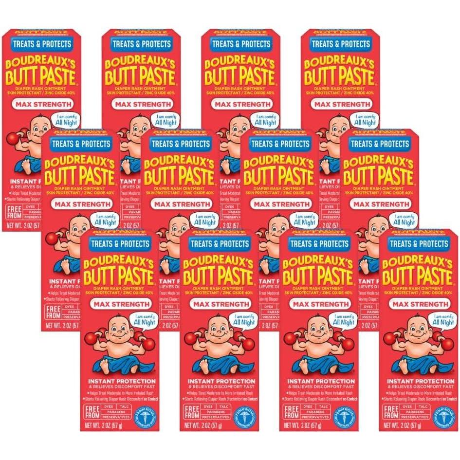 Boudreaux’s Butt Paste Maximum Strength Diaper Rash Cream, Ointment for Baby, 2 oz Tube, 3 Pack(2 Ounce (Pack of 12))