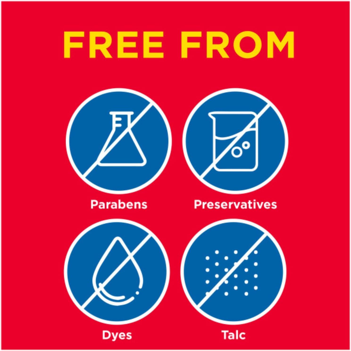 Tough on rash and free from parabens, preservatives, dyes and talc