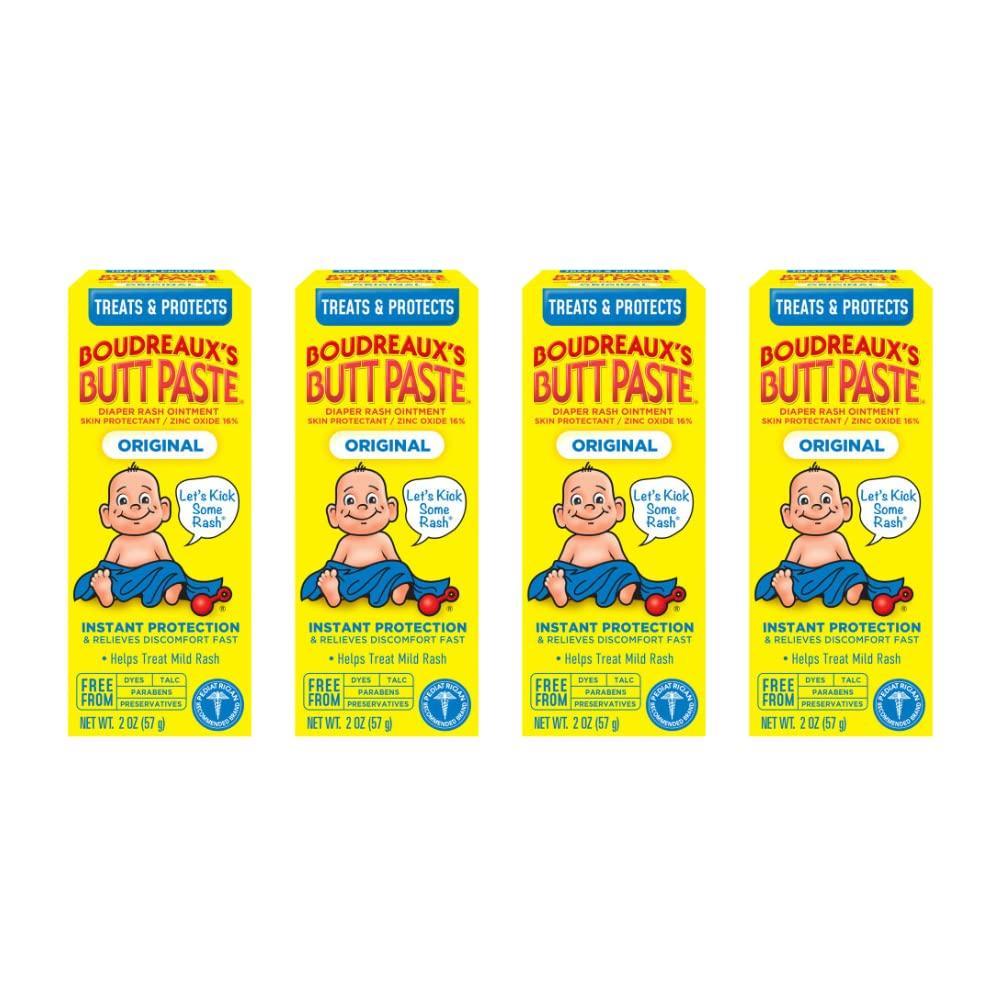 Developed by a pharmacist and father of four, Boudreaux's Butt Paste Brand has been trusted for over 40 years by pediatricians and parents to help protect irritated skin due to diaper rash and to instantly seal out wetness. When used daily, it is also a great way to help prevent diaper rash. Original Boudreaux's Butt Paste Diaper Rash Ointment is a thick, cream-like protective diaper rash paste with 16% Zinc Oxide and is ideal for treating mild diaper rash. It seals out moisture and helps keep baby’s boo-tay dry. Original Boudreaux's Butt Paste is free from dyes, preservatives, parabens and talc. Don't forget to keep your baby’s butt protected and your hands mess free with our diaper rash cream and ointment brush applicator. Boudreaux’s Butt Paste has diaper ointments for any baby’s boo-tay needs including maximum strength, sensitive, natural* aloe, and butt barrier.