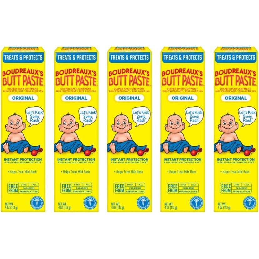 Developed by a pharmacist and father of four, Boudreaux's Butt Paste Brand has been trusted for over 40 years by pediatricians and parents to help protect irritated skin due to diaper rash and to instantly seal out wetness. When used on a daily basis, it is also a great way to help prevent diaper rash. Original Boudreaux's Butt Paste Diaper Rash Ointment is a thick, protective diaper rash paste with 16% Zinc Oxide and is ideal for treating mild to moderate diaper rash. It starts to soothe on contact, seals out moisture and helps keep baby’s boo-tay dry. Original Boudreaux's Butt Paste is free from dyes, preservatives, parabens and talc. Boudreaux's Butt Paste products are FSA- and HSA-eligible in the U.S.